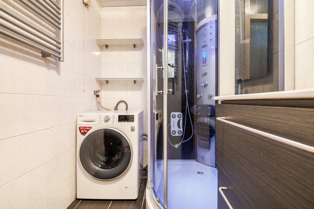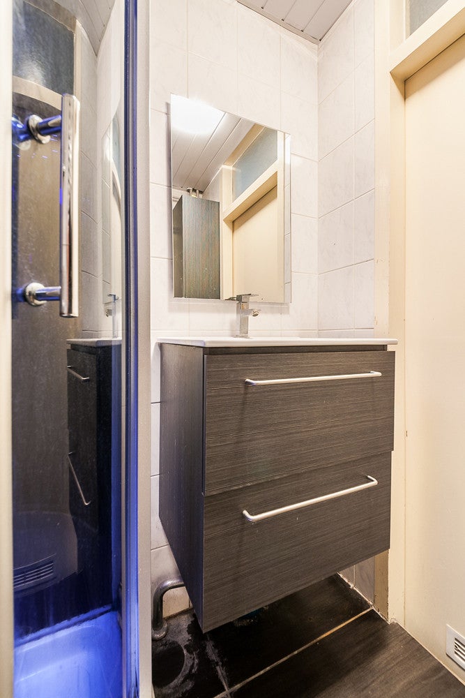 Inloopdouche, wastafel, wastafelmeubel, wasmachineaansluiting