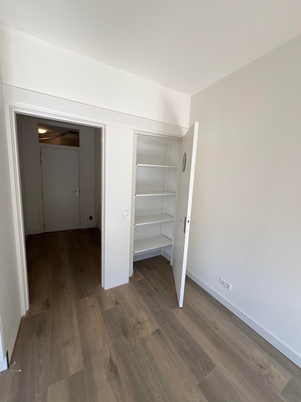 Aan de rechterkant van de overloop vindt u de eerste slaapkamer, ruim genoeg voor een tweepersoonsbed en kasten. Verder doorlopend komt u bij de tweede slaapkamer, die direct toegang biedt tot het balkon, perfect voor een ochtendkoffie of ontspanning in de frisse lucht.