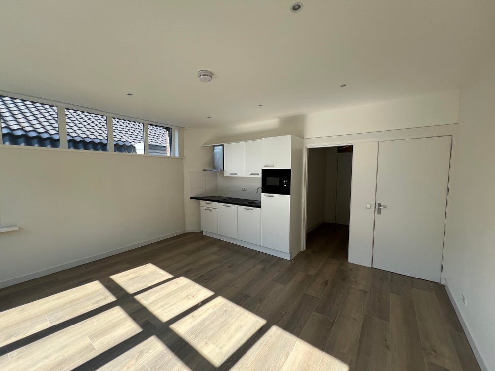 De ruime woonkamer bevindt zich aan de voorzijde van het appartement en biedt voldoende ruimte voor een comfortabele zithoek en een eethoek. De open keuken, direct verbonden met de woonkamer, is uitgerust met moderne apparatuur (combioven, vaatwasser en inductiekookplaat) en voldoende kastruimte.