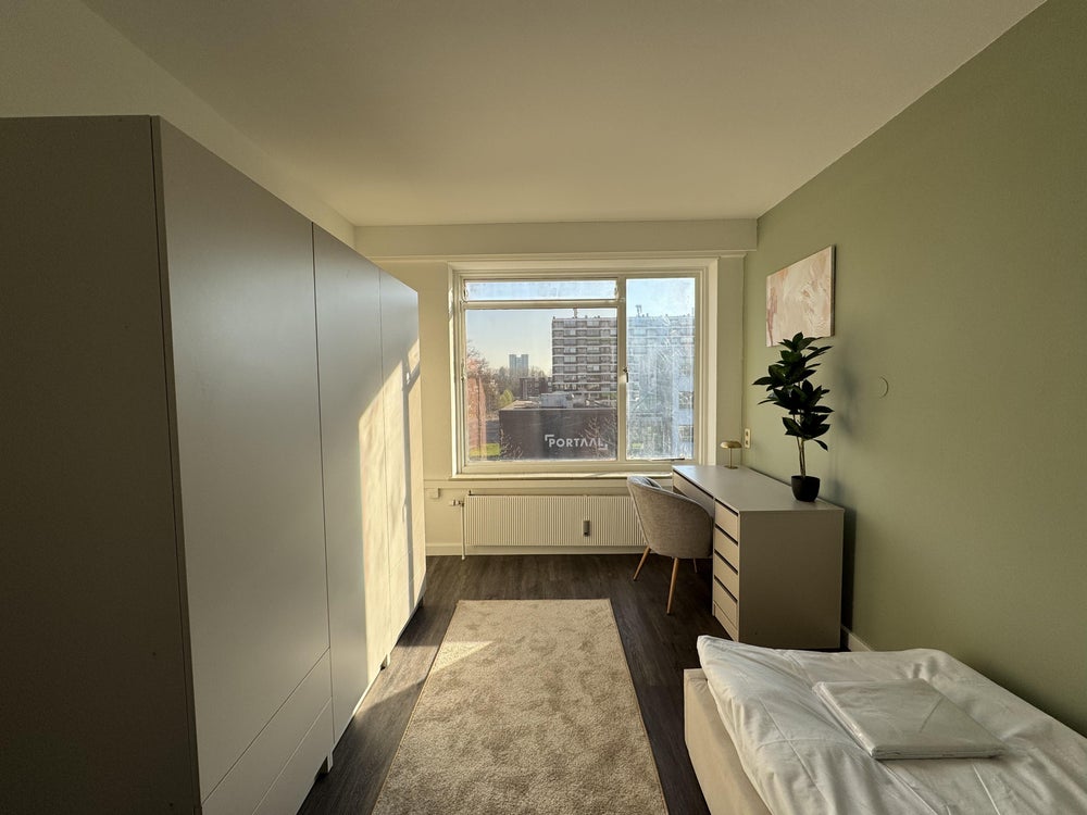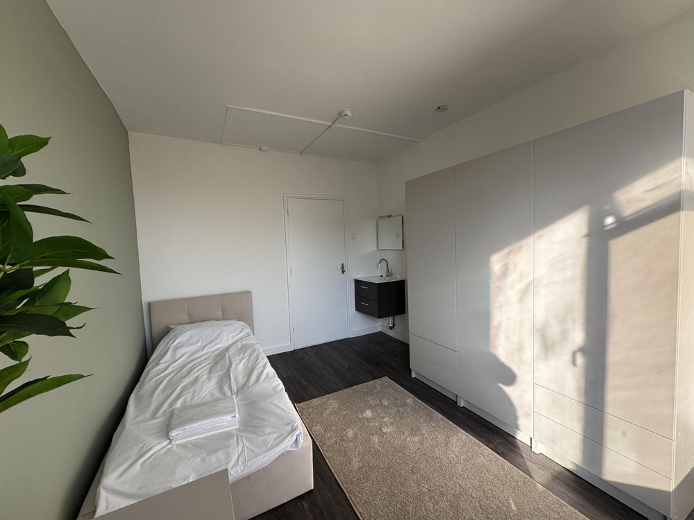 In het studentencomplex aan de Van Heuven Goedhartlaan in Utrecht bieden we deze gemeubileerde studenten kamer te huur aan. Deze specifieke kamer heeft een oppervlakte van 13 m². Op elke verdieping bevinden zich vijf kamers, allemaal uitgerust met een gedeelde badkamer, keuken en apart toilet. Elke kamer wordt gestoffeerd en gemeubileerd opgeleverd en beschikt over een eigen wastafelmeubel met spiegel.